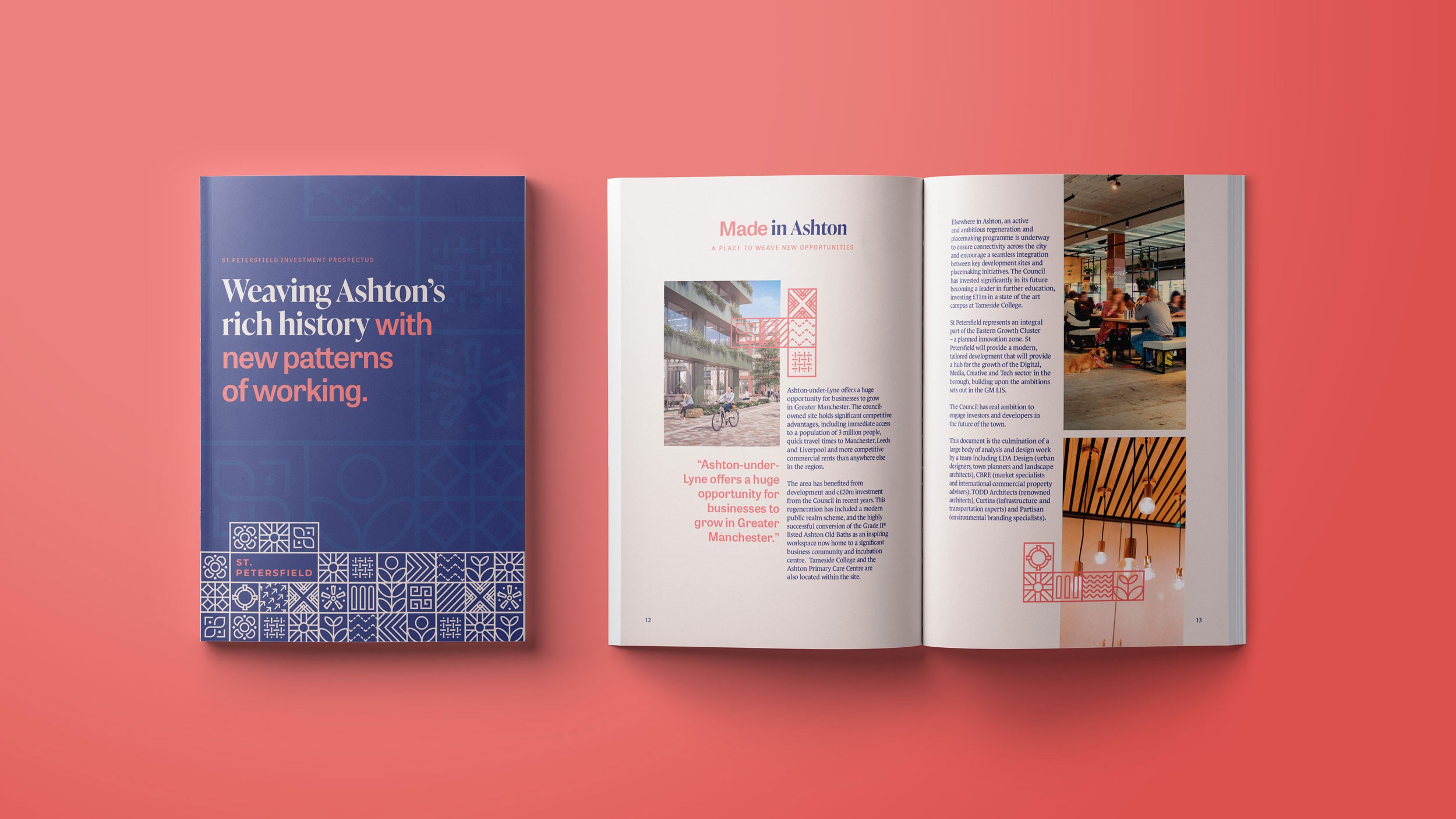 The St Petersfield business quarter in Ashton-under-Lyne needed an identity to connect it with the local area — our brief was to develop a place branding concept that made this connection but also emphasised the development’s revitalising potential.
