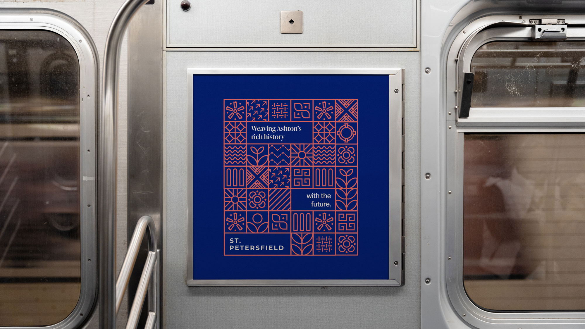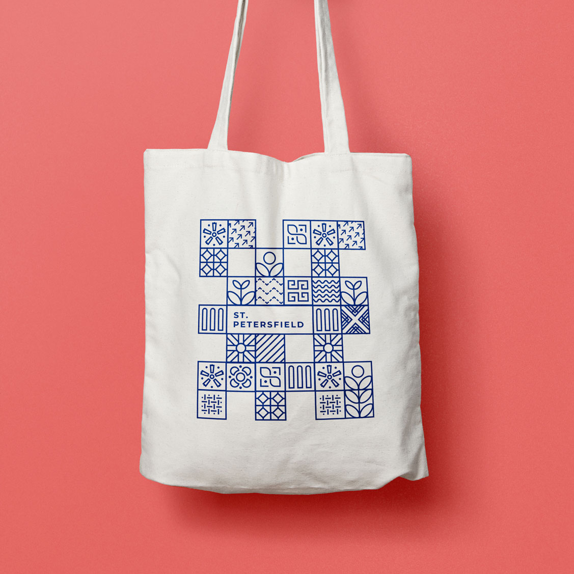 Mason was the hook for St Petersfield’s brand identity. We developed graphics to reference the area’s textile-producing cultural history and combined them with a contemporary colour palette.